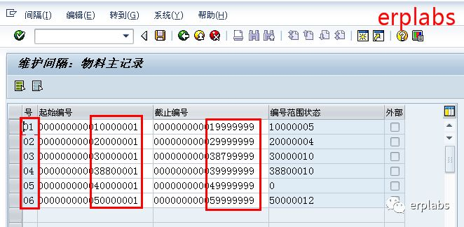 如图所示,为物料类型分配相关编号范围,其中38800001至39999999是公司间物料编号范围。