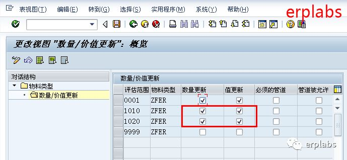 选中行ZFER,双击“数量/价值更新”,进入下一界面