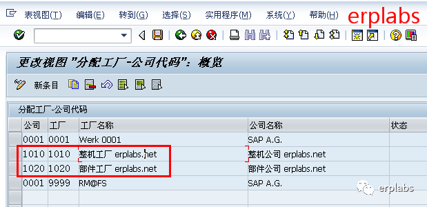 复制或新建1010公司代码对应1010工厂,1020公司代码1020工厂,本案例一个公司代码对应一个工厂。