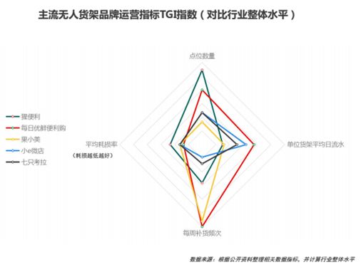 在TalkingData报告中,可以清晰地看到,每日优鲜便利购的TGI指标高于行业整体水平,在点位数量、平均损耗率、每周补货频次、单位货架平均日流水的综合比较重占据优势。或许这也是每日优鲜便利购受到资本青睐的理由,这也将成为其最终胜出的重要筹码。
