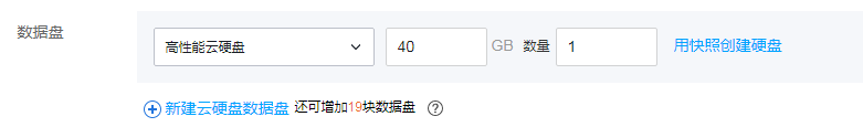 系统盘我们用自带的大小就可以了,数据盘我们根据自己的程序大小来选择就行,一般最开始选择40-50g就可以了,后期如果不够也是可以动态增加的。