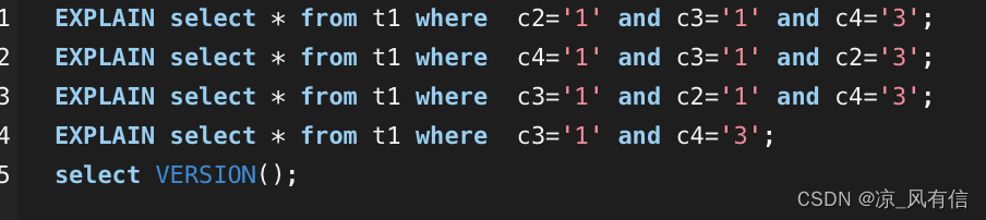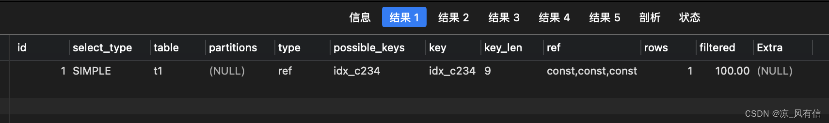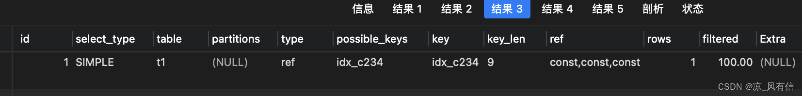 可以看到完美使用了联合索引,一点都没浪费。第二条我们来试试最右匹配C4/C3/C2