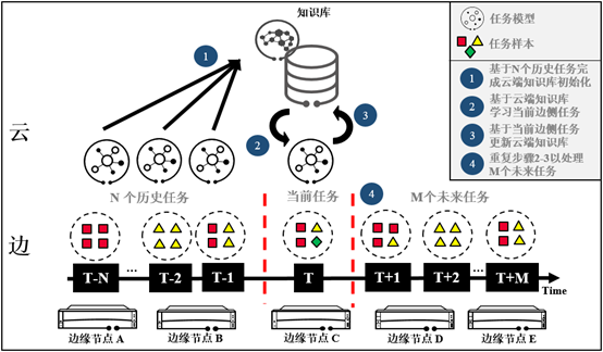 具体来说,边云协同终身学习的一般流程如图2所示: