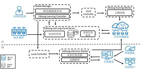 在本次0.3版本更新中,Sedna提供了边云协同终身学习的特性支持。Sedna终身学习特性将基于边侧数据和云侧算力,逐步实现适应边侧业务与模型异构的高可信自动化人工智能。