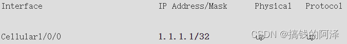 1、在AR1上执行命令display ip interface brief Cellular 1/0/0查看5G Cellular接口的详细信息,当接口上有流量传送时,可以看到接口获取到的IP地址,接口的物理状态和链路层协议状态都是Up。