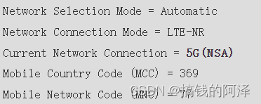 2、在AR1上执行命令display cellular 1/0/0 all查看5G数据卡的呼叫连接信息,可以看到APN为5gnet、无线网络类型为Automatic以及网络连接方式为5G(NSA)。
