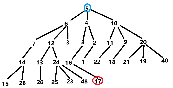输入的第一个数是一个正整数 N,表示测试数据一共有 N 组(0 之后有 N 行,每一行包含两个正整数 S 和 T,表示出发和到达时间点。S≠T。 输出包括N行,每一行一个正整数,表示每组测试数据对应的最少时光机操作次数。 给定一个开始数据,然后按照下列规则,变成另外一个数据,最少需要几次: 规则1:数据 X 可以变为 X+1。 规则2:数据 X 可以变为 X-1。 规则3:数据 X 可以变为 2*X。 规则4:数据 X 如果是偶数,可以变为 X/2。 我们就分析一组数据,我们选择 5 17 这组数据。问题就是从 5 开始,按照规则变成 17 需要最少几步。那么根据规则我们可以画出如下的一棵树: 从上图我们可以非常清晰的看出,从 5 变成 17,只需要 4 次。由于规则中有对称部分,规则 1 和规则 2 对称,规则 3 和规则 4 对称。因此 17 变为 5 也需要 4 次,这样输出答案为 8 次。 从上图可以看出,这是一个典型的 BFS 题目,因为题目要求我们输出最小次数。因此我们可以写出一个大体框架。 1、读入数据。 2、从开始数据开始,进行 BFS 遍历,看到达结束数据需要几次。 1、已知数据,如何按照规则变为下一个数据? 我比较傻,暂时没有想出统一代码,我就逐一编写规则。代码类似: 2、如何记录一个数据已经访问过? 第一次我想节约点空间,使用 unorderd_map 来记录访问性。定义方法如下: 结果导致有 4 个样例超时,没有通过。主要 unorderd_map 内部是哈希表实现,相对比较耗时,导致了 TLE。 最后只要不考虑空间问题,直接定义如下:输出格式