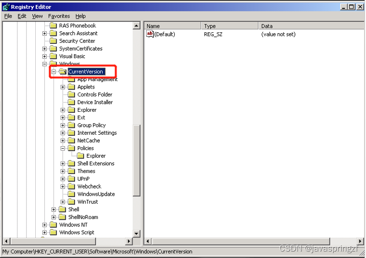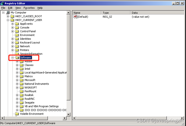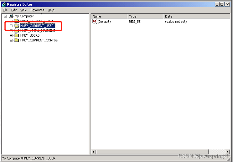 第三步:出现图二所示内容,点击HKEY_CURRENT_USER前面的 “+”号