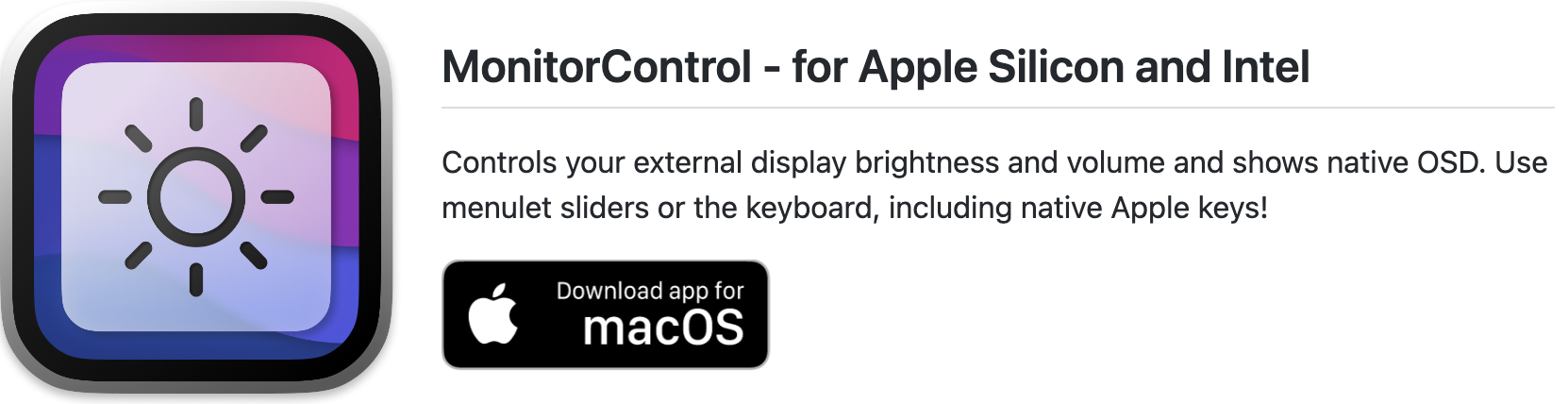 获取链接:https://github.com/MonitorControl/MonitorControl#readme
