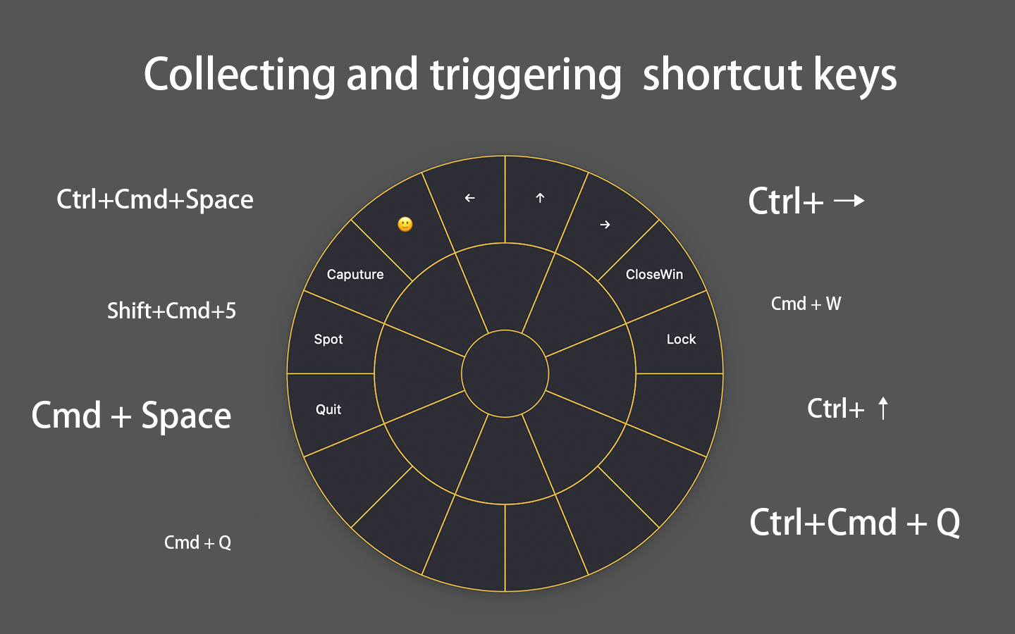 CirMenu主要功能是可以通过鼠标或触控板,来触发应用快捷键,免于键盘操作,免于记忆快捷键。 圆盘菜单的交互方式,在很多游戏中有使用,如Apex的投掷物,药剂选择。交互比较高效,操作方式与手势类似,同时因为有可视化界面,弥补了手势难以记忆的问题。