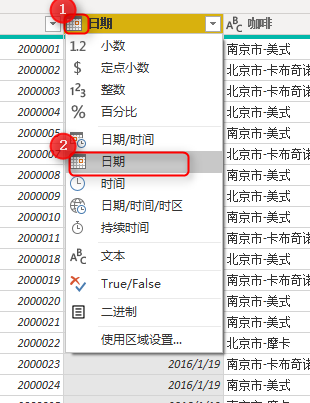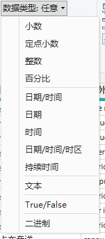 点击数据类型图标,选择目标数据类型,即可完成数据类型的转变。