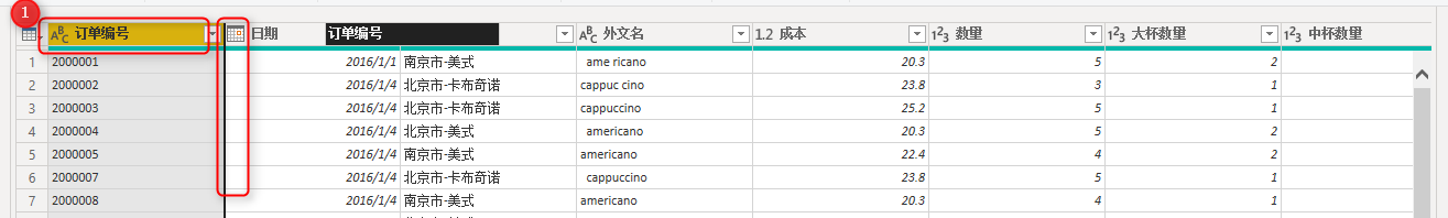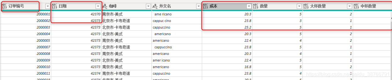 观察数据中多列数据类型不正确,需要手动转变。日期列数据类型应该为日期,而系统自动检测将其认为是文本和数字类型了。而成本和数量等列