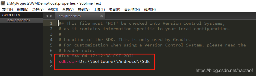 sdk.dir=D\:\\Software\\Android\\Sdk是我的Android sdk的安装目录