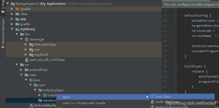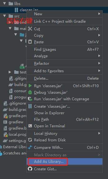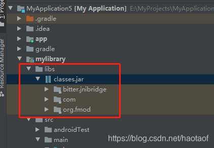 1.创建如下图文件夹并将classes.jar(名称可以自己命名)放入到libs文件夹下