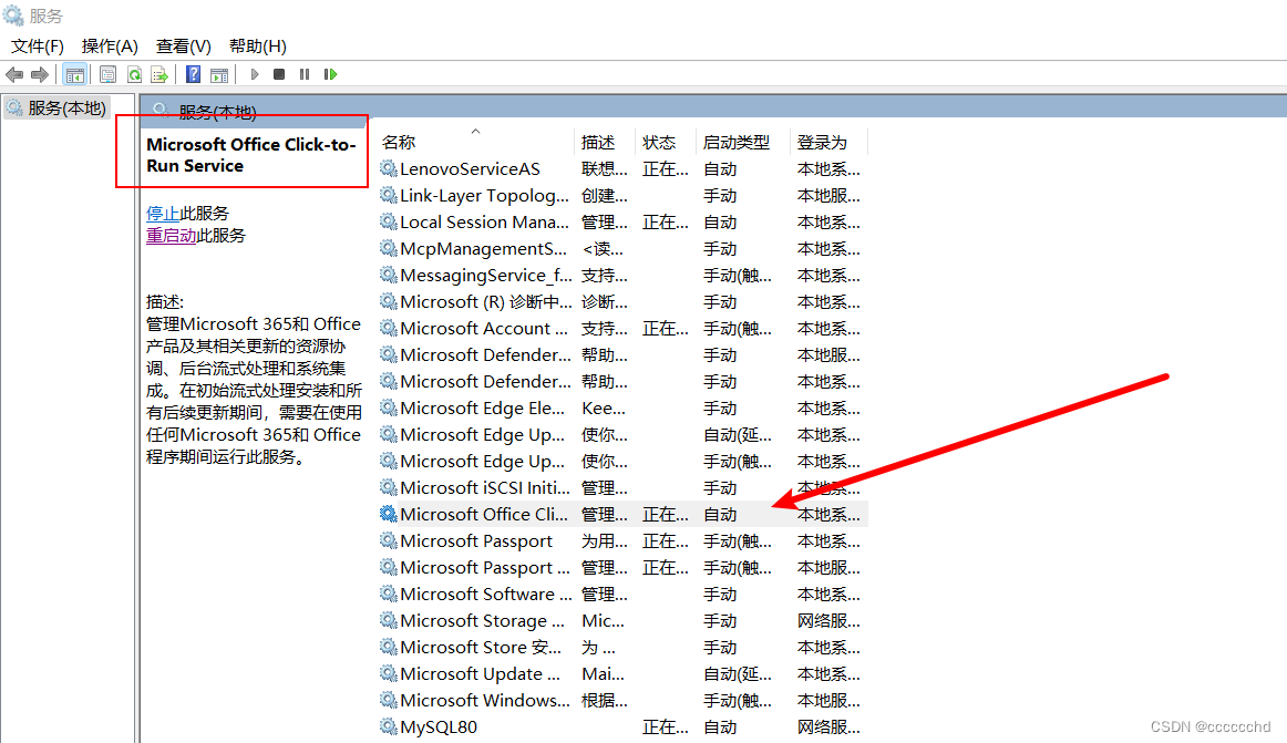 到Microsoft Office Click-to-Run Service(即点即运行)修改为禁用,然后修改为自动,启动服务。