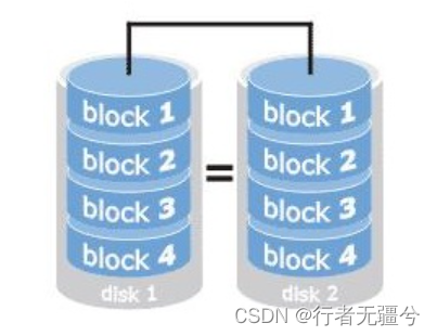 RAID1其实与RAID0效果刚好相反。RAID1 这种写双份的做法,就给数据做了一个冗余备份。这样的话,任何一块磁盘损坏了,都可以再基于另外一块磁盘去恢复数据,数据的可靠性非常强,但性能就没那么好了。