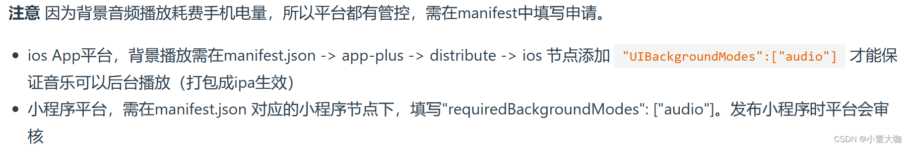 "requiredBackgroundModes" : [ "audio" ] //在manifest.json源码视图里面添加