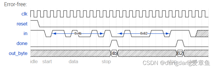 现在,您有一个有限状态机,可以识别何时在串行比特流中正确接收字节,请添加一个数据路径,该路径将输出正确接收的数据字节。out_byte 在完成为 1 时需要有效,否则不在乎。