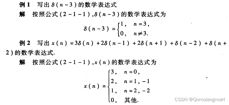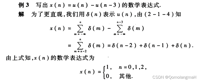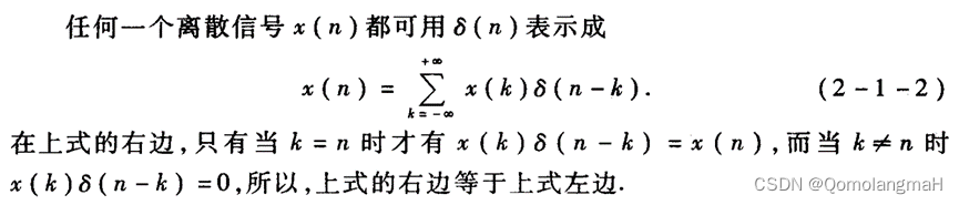 任意离散序列可以表示为单位抽样序列延时的幅度加权之和;单位抽样的表示方式有利于进行某些数学运算。