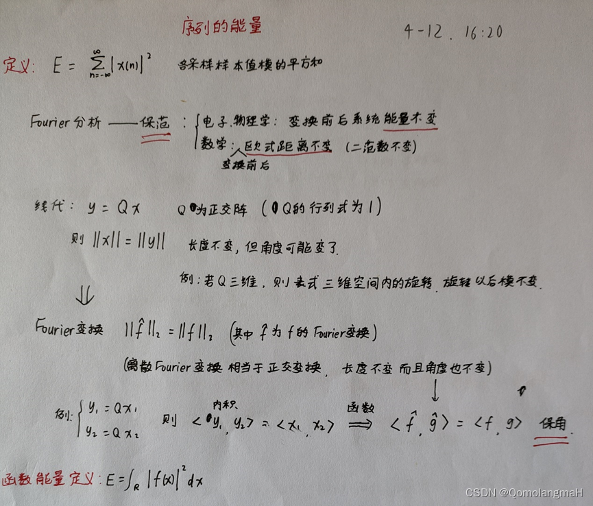 离散序列的能量定义为各采样样本值模的平方和