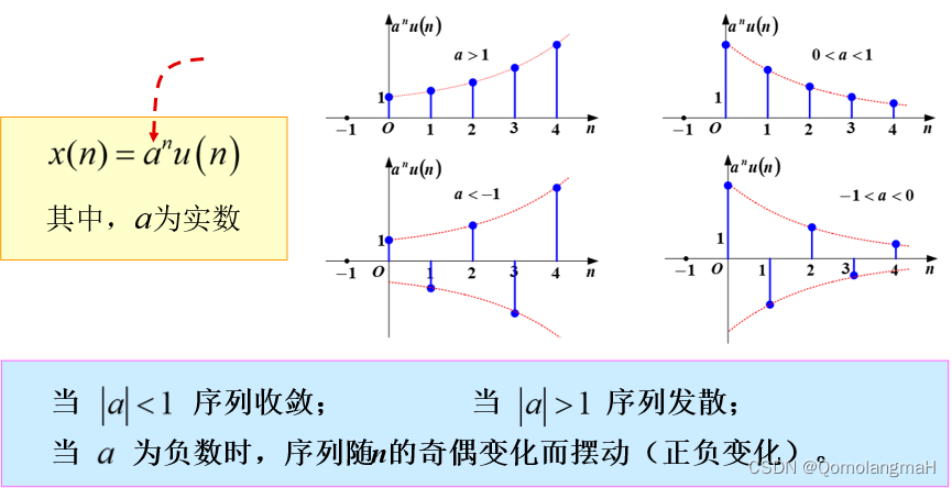 以实数为底数的指数函数的离散形式。幅值随时间变化较慢或增长或衰减。