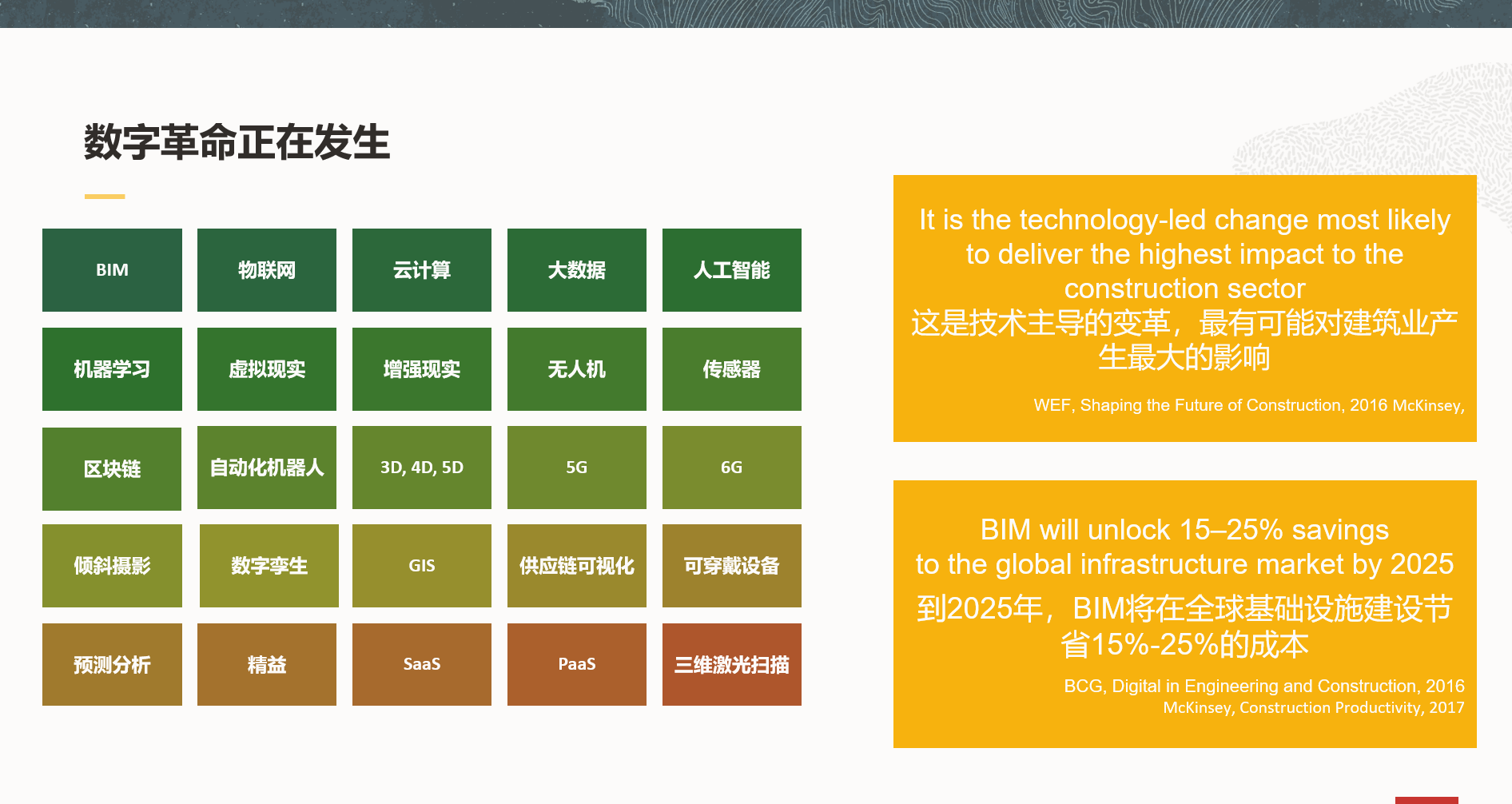 另一方面,我们看到各种新技术在工业制造领域、航空航天领域应用效率非常好,极大的提高了生产效率和科技化水平。虽然,目前这些技术对于工程项目领域的促进还不明显,但科技的趋势必须跟随,否则企业便会面临淘汰。