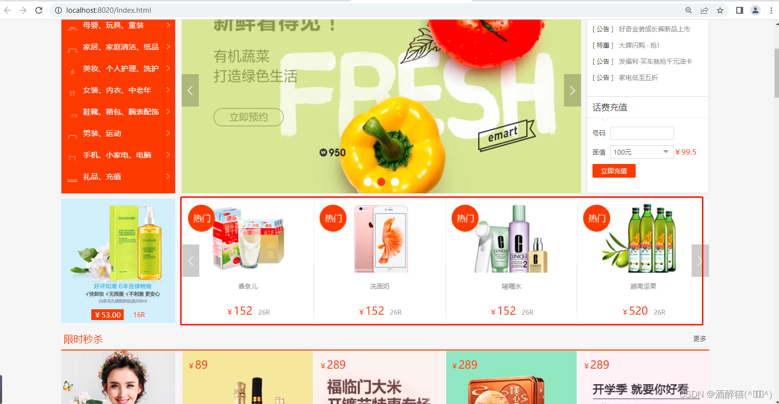 4、在index.html中绑定热门数据和product.html中绑定商品详情数据