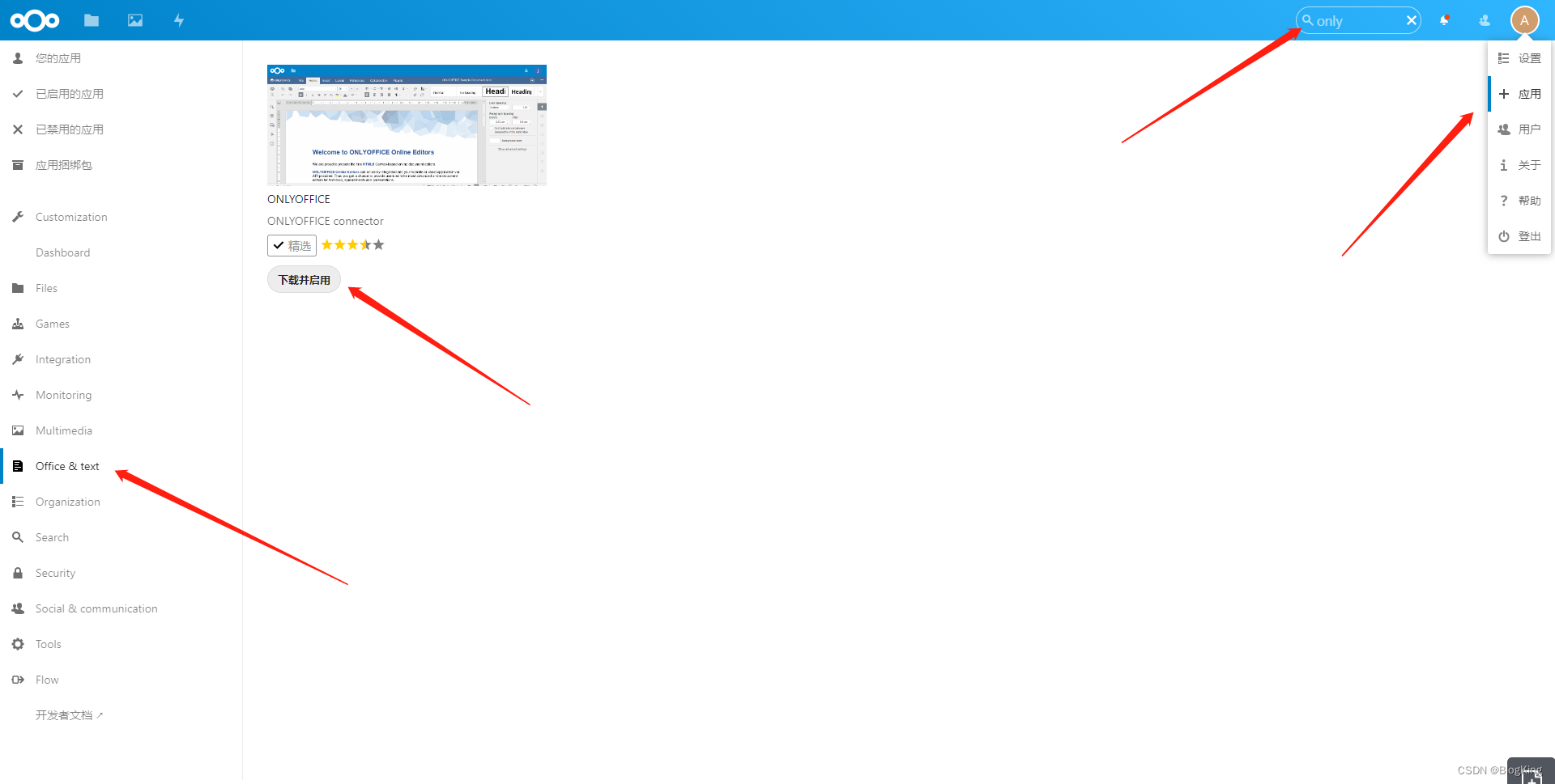 - Nextcloud 扩展应用安装(可离线安装):https://apps.nextcloud.com