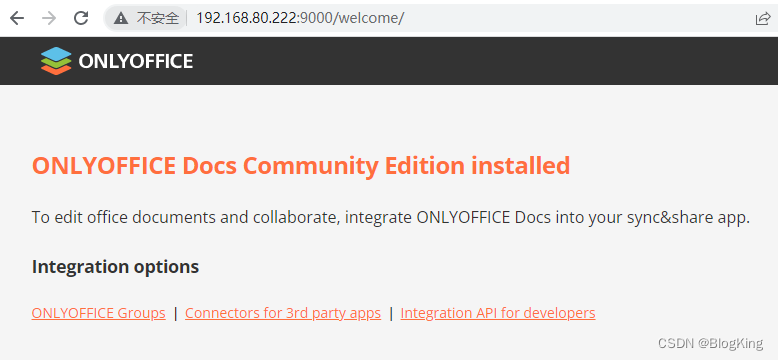 # 3. 访问页面 http://192.168.80.222:9000/welcome/ 如下图所示即可
