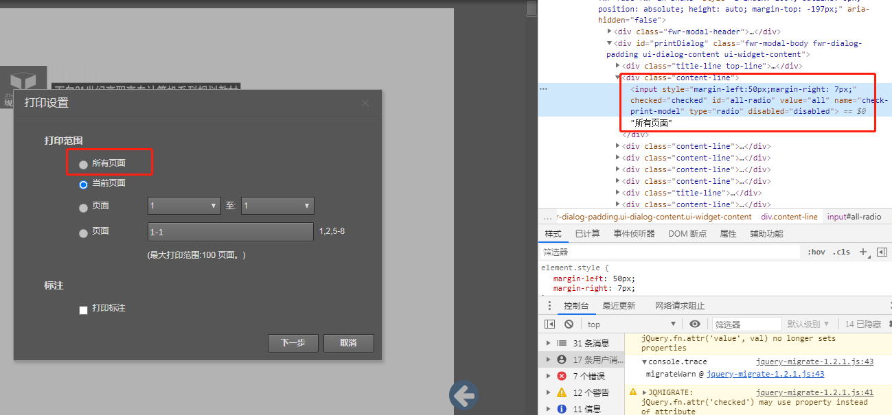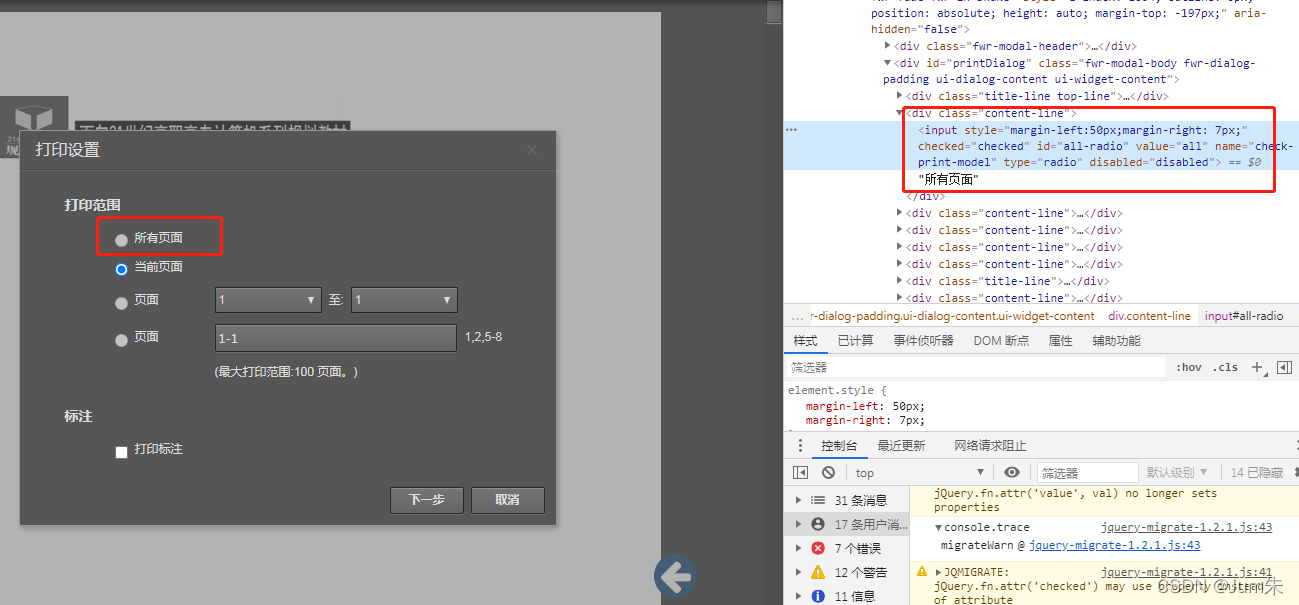 但是字体看题限制打印是100页,木办法那就去去掉【页面】的disabled属性吧,先100页搞起。发现可以了,good。