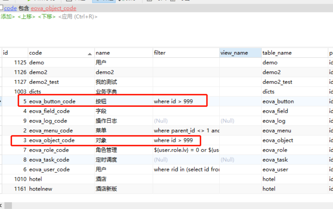2、分析菜单的按钮“导出元数据脚本”,注意,此处无法在“按钮”菜单中查看,只能从数据库查询,因为元数据设定了查询条件“where id > 999”,因此界面上无法看到系统内置的相关元数据和按钮