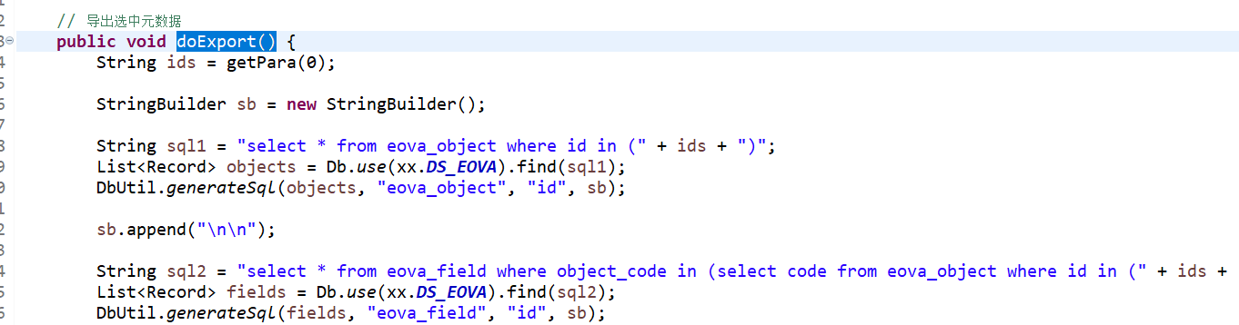 5、得知请求的路径是/meta/doExport/,对应的controller是MetaController.doExport()