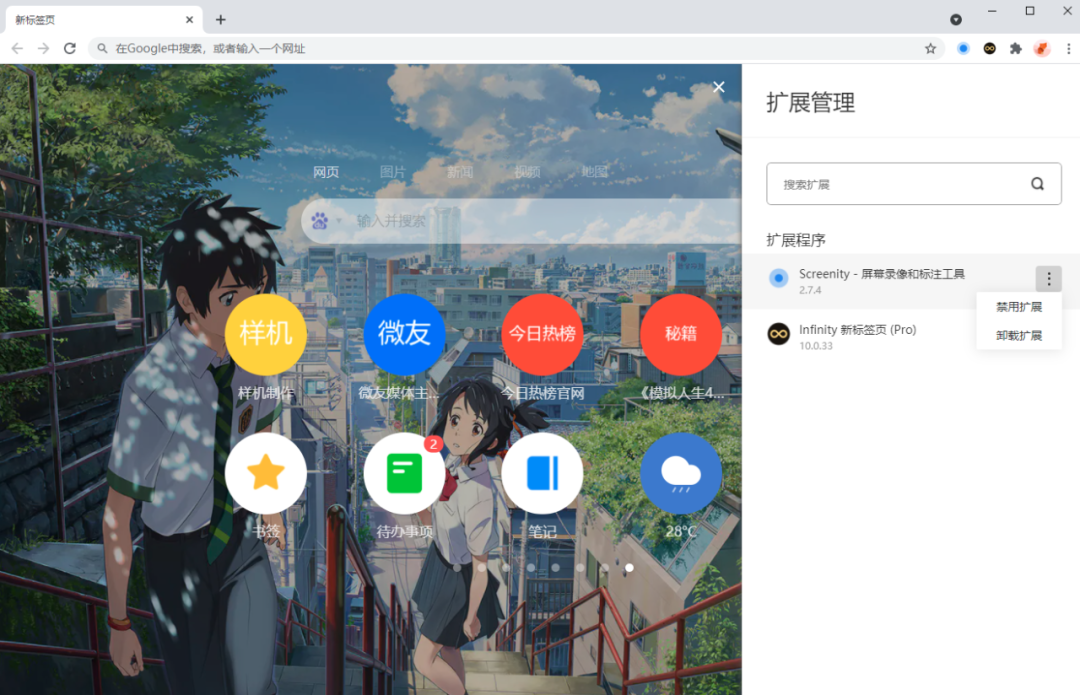 已经安装了Infinity新标签页的Chrome/Edge用户,打开浏览器扩展程序管理页面,即chrome://extensions/