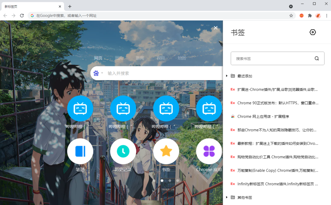清爽、简洁,比浏览器原生书签栏更一目了然。