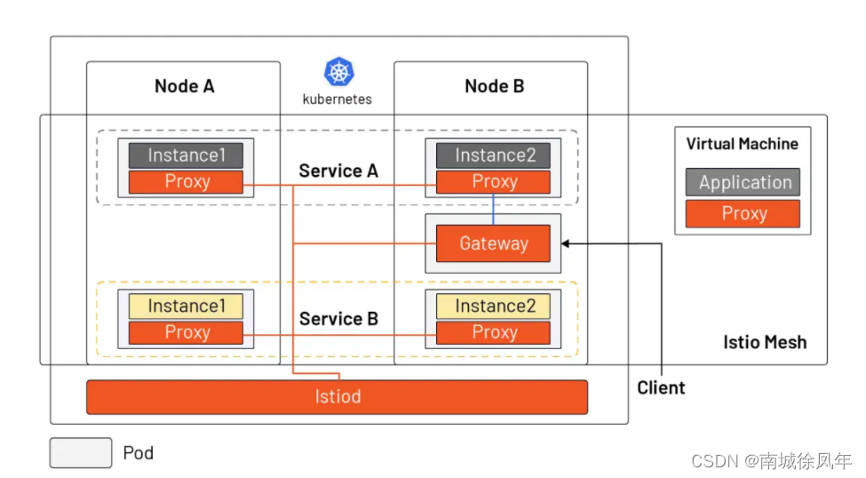 总结:Kubernetes 负责粗粒度的,目标是服务(一个服务可以有多个实例,每个实例有N多流量)
