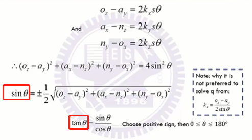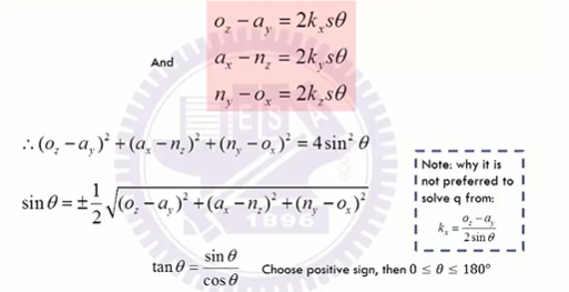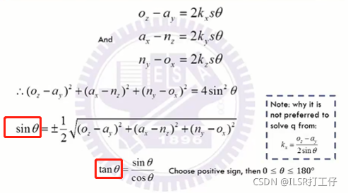 有正负合理,有两个解。选择正号的,选择角度比较小的,整的时候小于180°