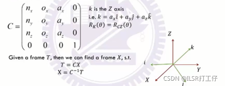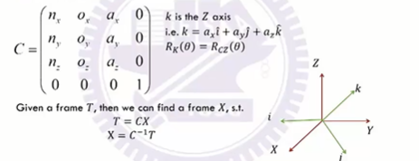 Rotating T about is equivalent to rotating Xaround Z axis of frame C