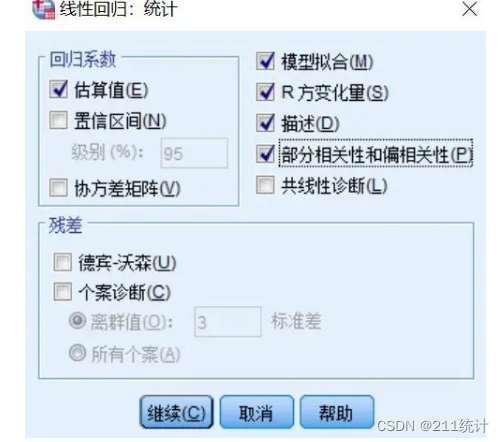在“统计”中,勾选上“R方变化量”。方便我们后续查看中介变量对模型的影响。