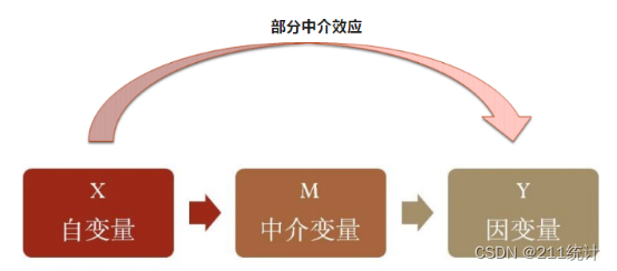 从上图中,相信大家也能看出来,部分中介效应比完全中介效应多了一个从自变量X到因变量Y的长箭头。
