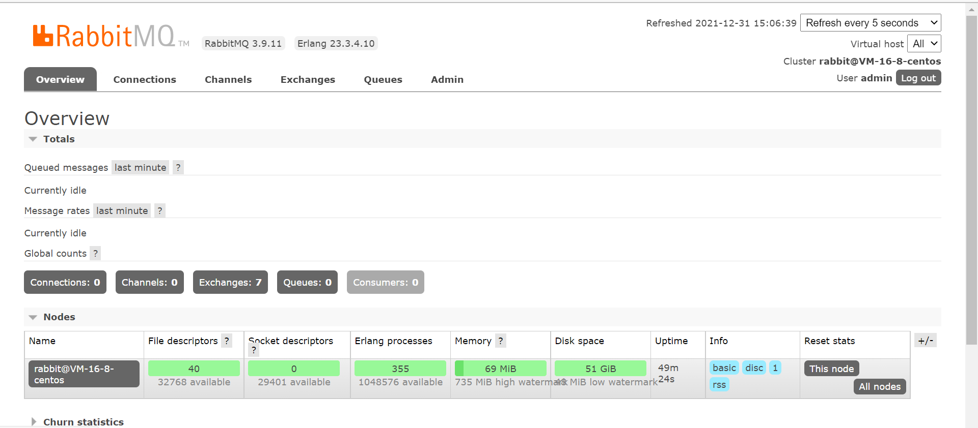 monitoring :访问 management plugin 和查看所有配置和通道以及节点信息;