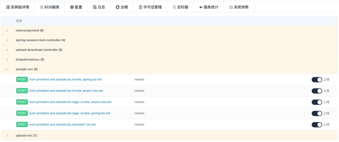 通过Govenor,可以看到一个应用的EOS服务列表,并支持对每个具体的服务进行上/下线操作,下线的服务再被访问时,会返回403。