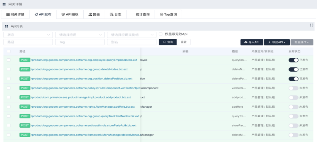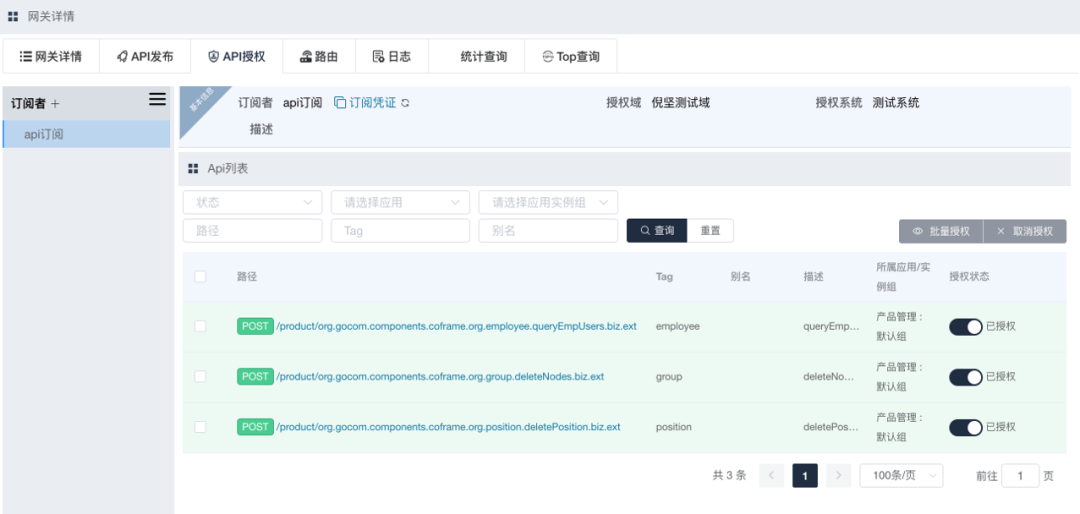 EOS服务还可以通过网关进行发布/授权,已授权的服务可以被其他系统的应用调用。其他系统的应用调用这种服务的时候需要在请求头里加上订阅凭证。