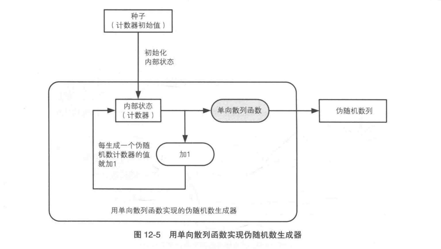 单向散列函数也可以生成不可预测的伪随机数,且为强伪随机数(因为它的单向性,具备不可预测性)。