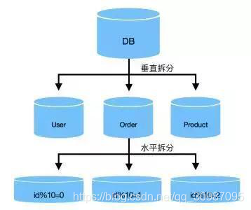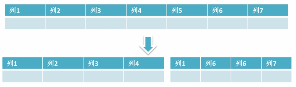 垂直拆分是指数据表列的拆分,把一张列比较多的表拆分为多张表,如下图所示:
