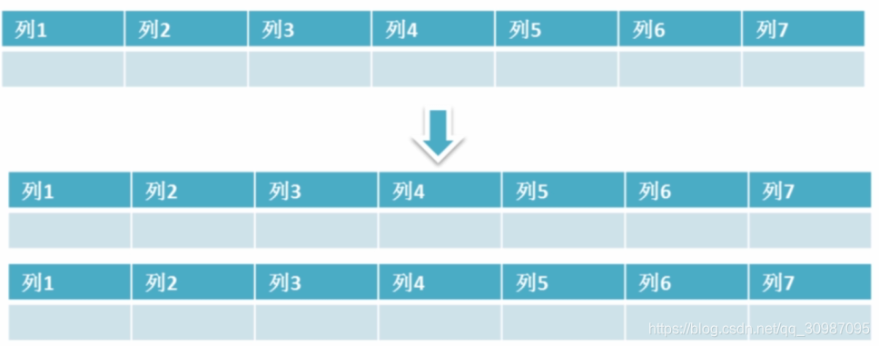 水平拆分是把一张表的数据拆分成多张表来存放,如下图:
