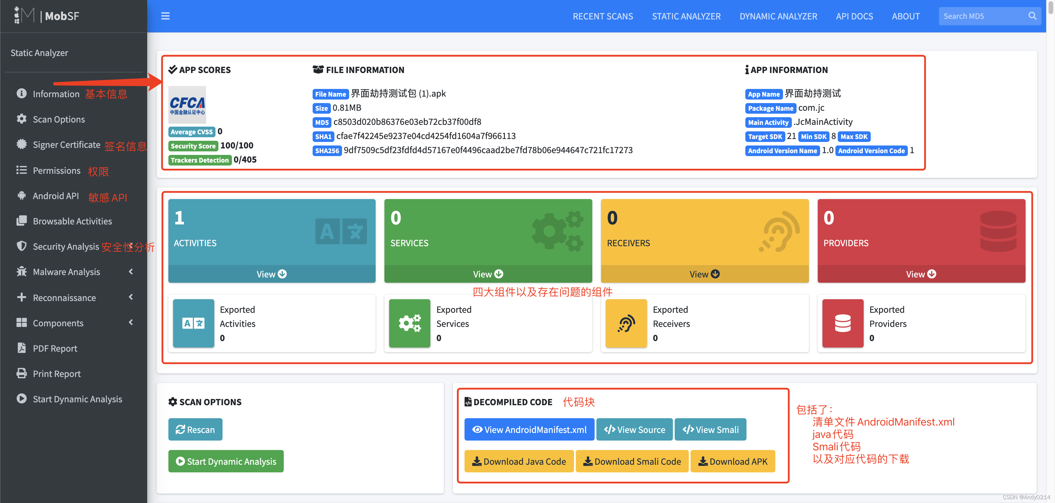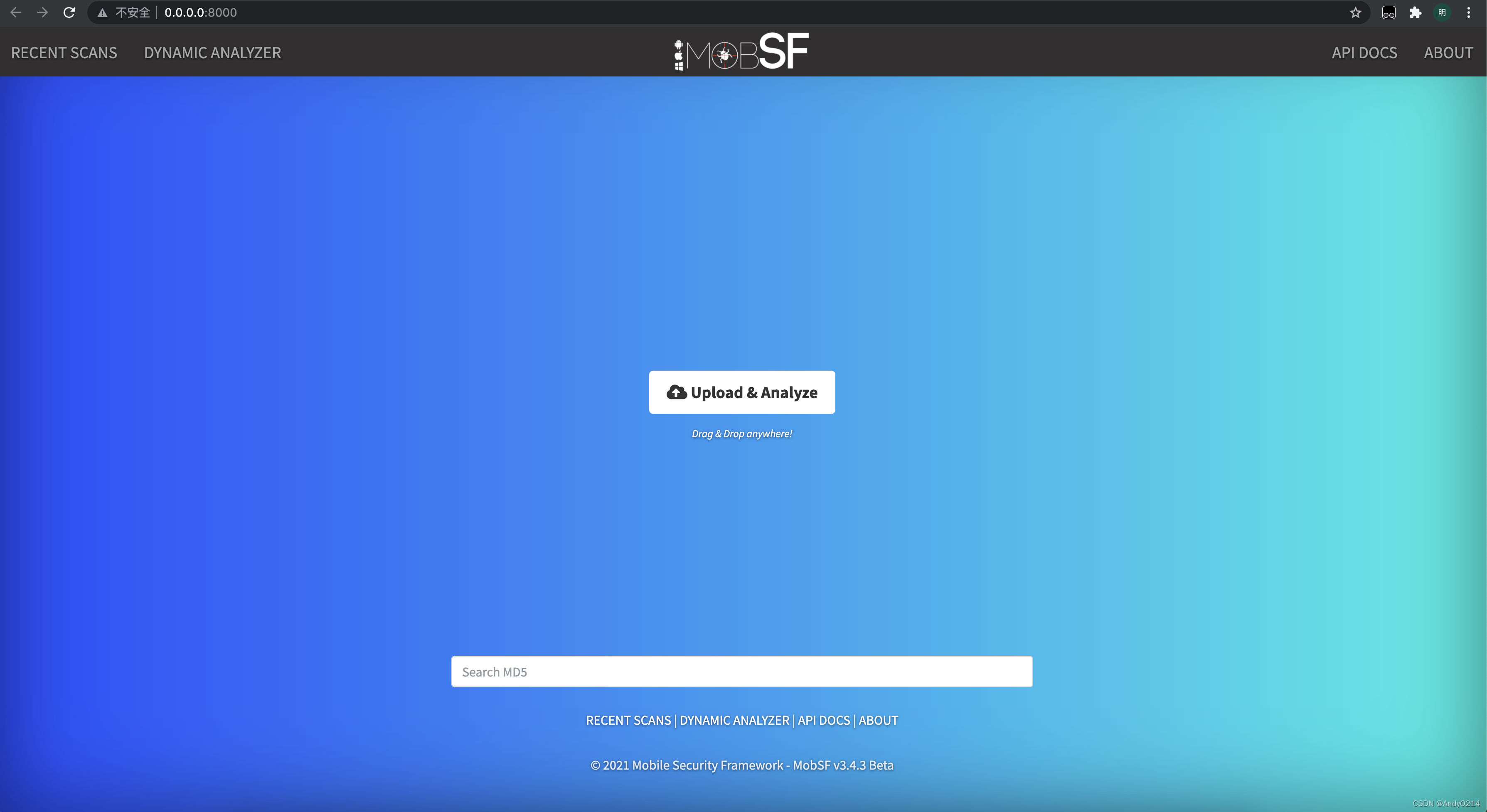 - 按照 MobSF 文档即可成功安装,安装完成后,启动 MobSF 服务器