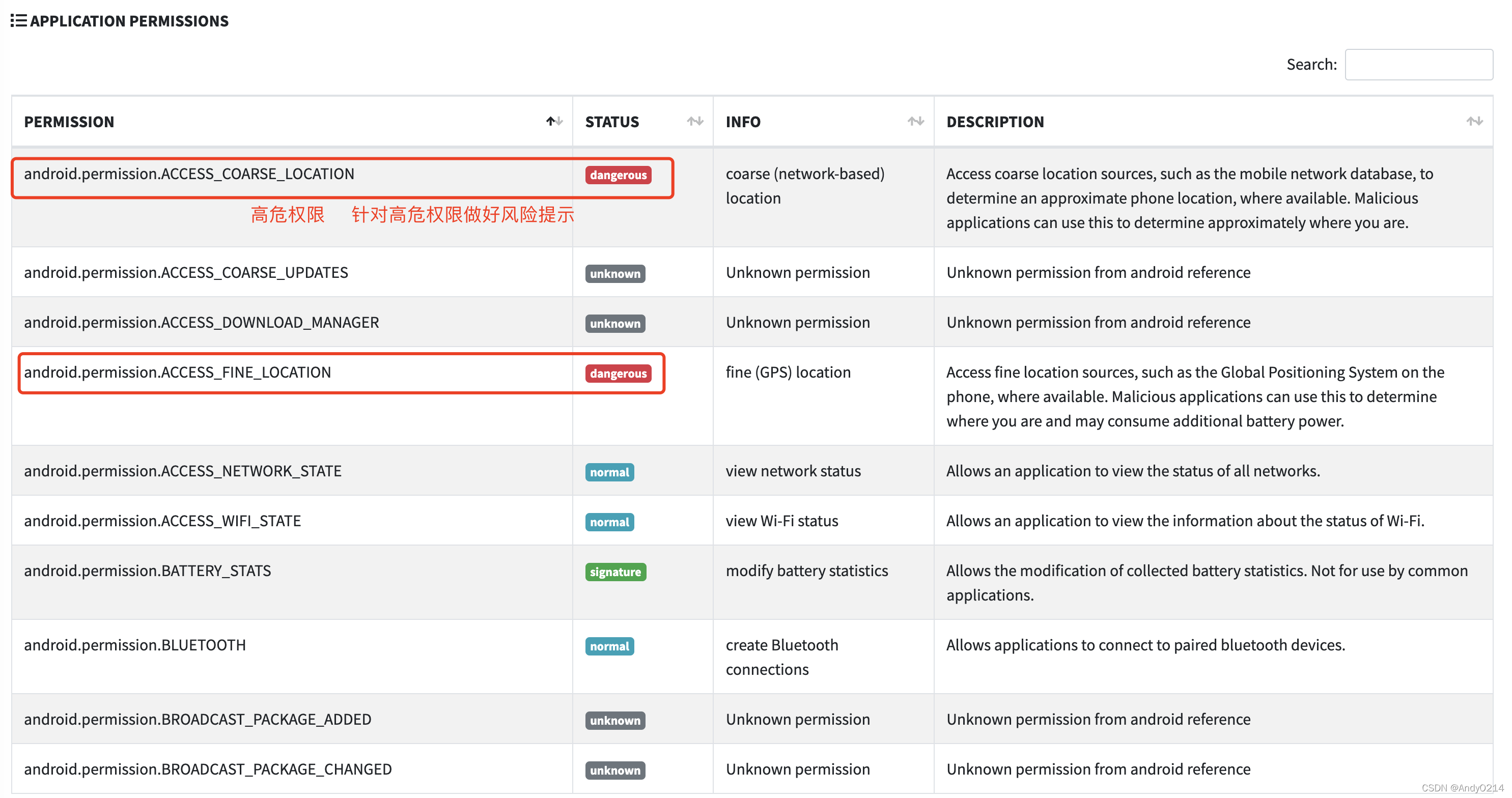 - 组件:导出和非导出的组件(Activity、Service、Broadcast Receiver、Content Provider)
