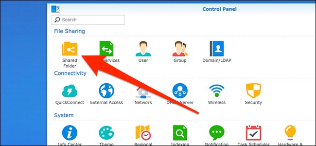 The first thing you’ll need to do is create a separate shared folder on your NAS that’s specifically for Time Machine backups. To do this, fire up DiskStation Manager and open up the Control Panel.