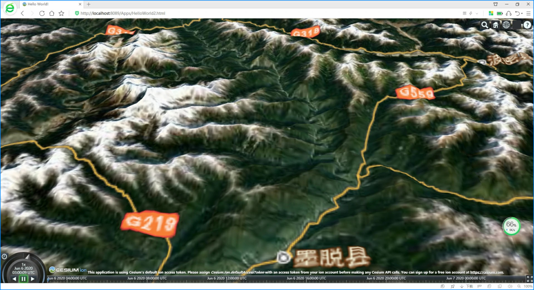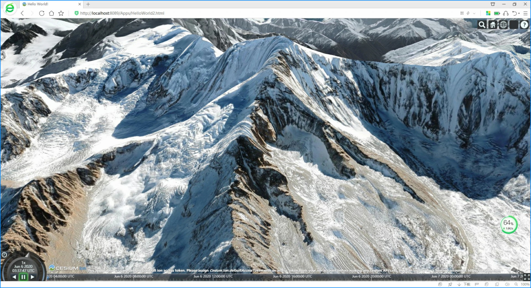 打开以下网址,可以显示加载本地影像与高程数据的三维地球,如下图所示。