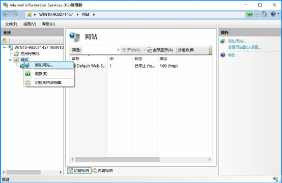 在“网站”树节点单击鼠标右键,然后选择“添加网站”菜单,如下图所示。